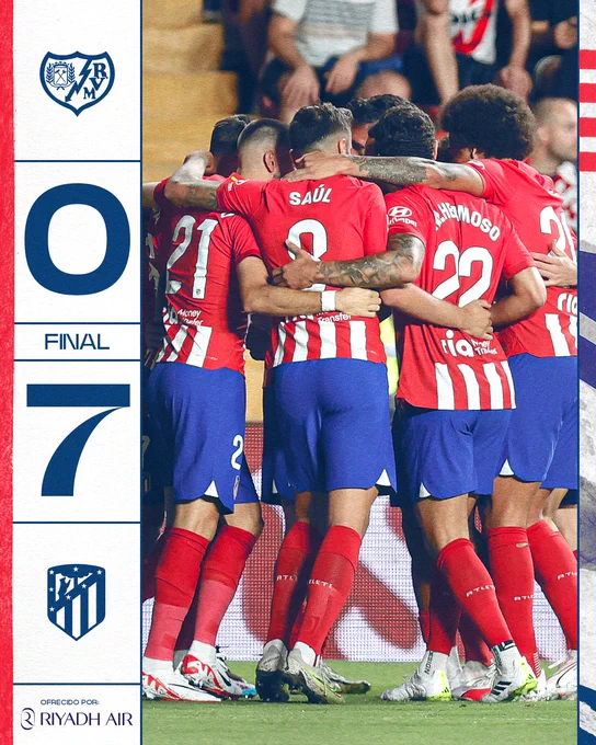 فاز فريق أتلتيكو مدريد على نظيره رايو فاليكانو، بسبعة أهداف مقابل لا شيء، في المباراة التي جمعت بينهما منذ قليل، ضمن منافسات الجولة الثالثة من مسابقة الدوري الإسباني الممتاز.