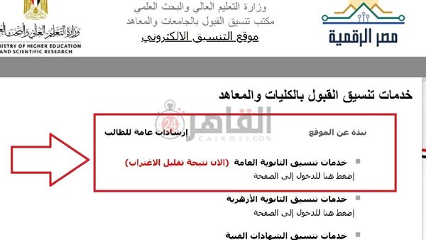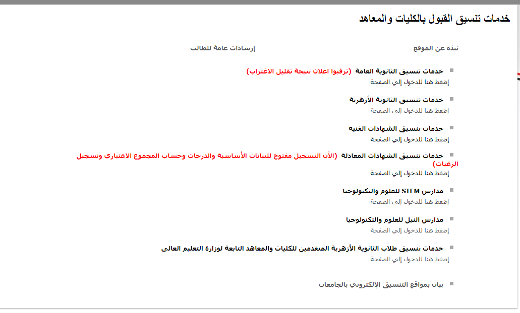 وستظهر عبارة: ظهرت نتيجة تقليل الاغتراب، أمام خانة خدمات تنسيق الثانوية العامة في موقع التنسيق الإلكتروني عبر الرابط التالي عندما تكون النتيجة متاحة أمام الطلاب.