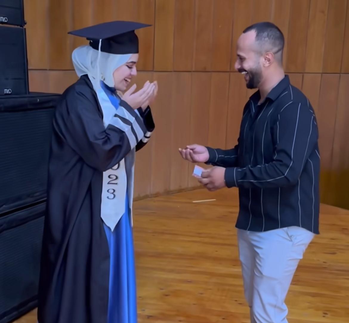 بابا كان عارف وهو حب يفرحني.. شاب يفاجئ فتاة ويطلب يدها للزواج في حفل التخرج
