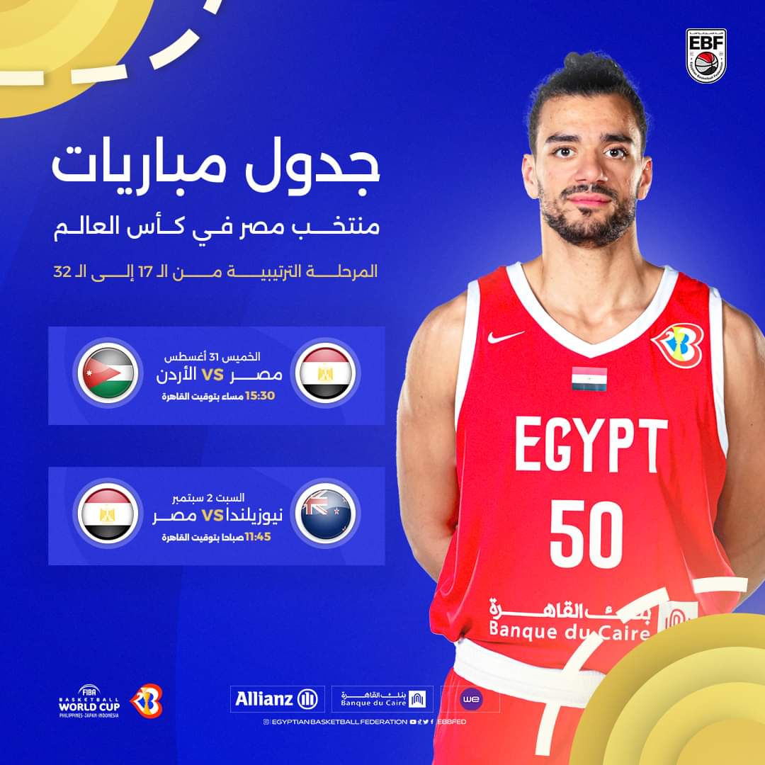 يخوض منتخب مصر لكرة السلة مواجهتين في إطار المرحلة الترتيبية من المركز الـ 17 حتى الـ 32 بكأس العالم لكرة السلة 2023.