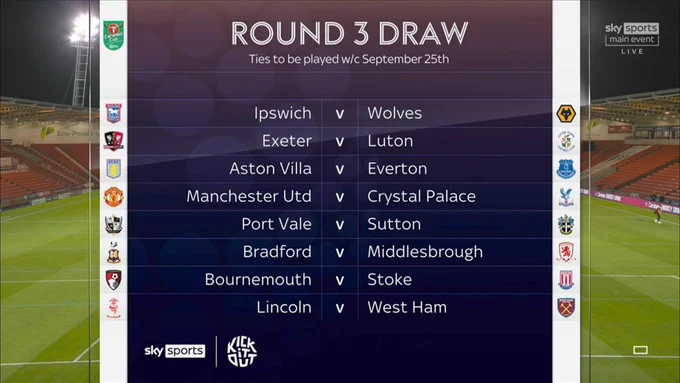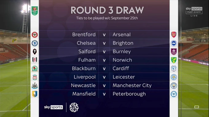 وجاءت مواجهات دور الـ 32 من بطولة كأس الرابطة الإنجليزية عقب نهاية القرعة كالآتي: