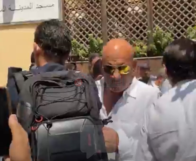 محمد لطفي يواسي عمرو عبد الجليل في جنازة شقيقه بمسجد المدينة المنورة