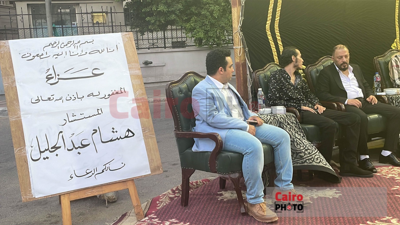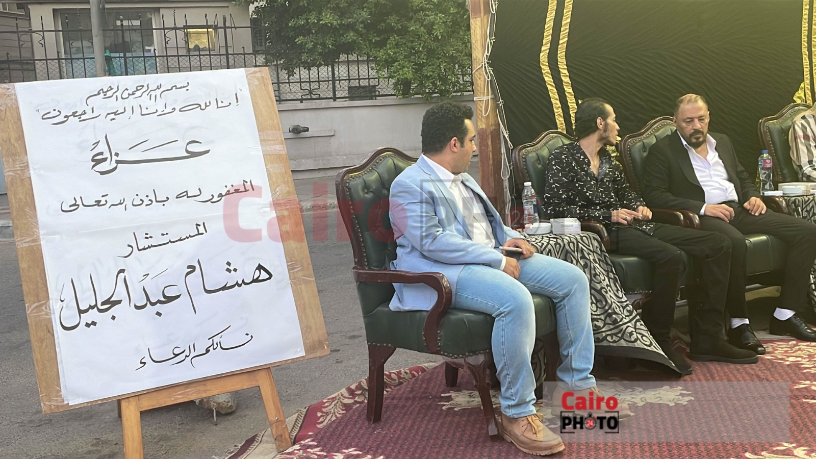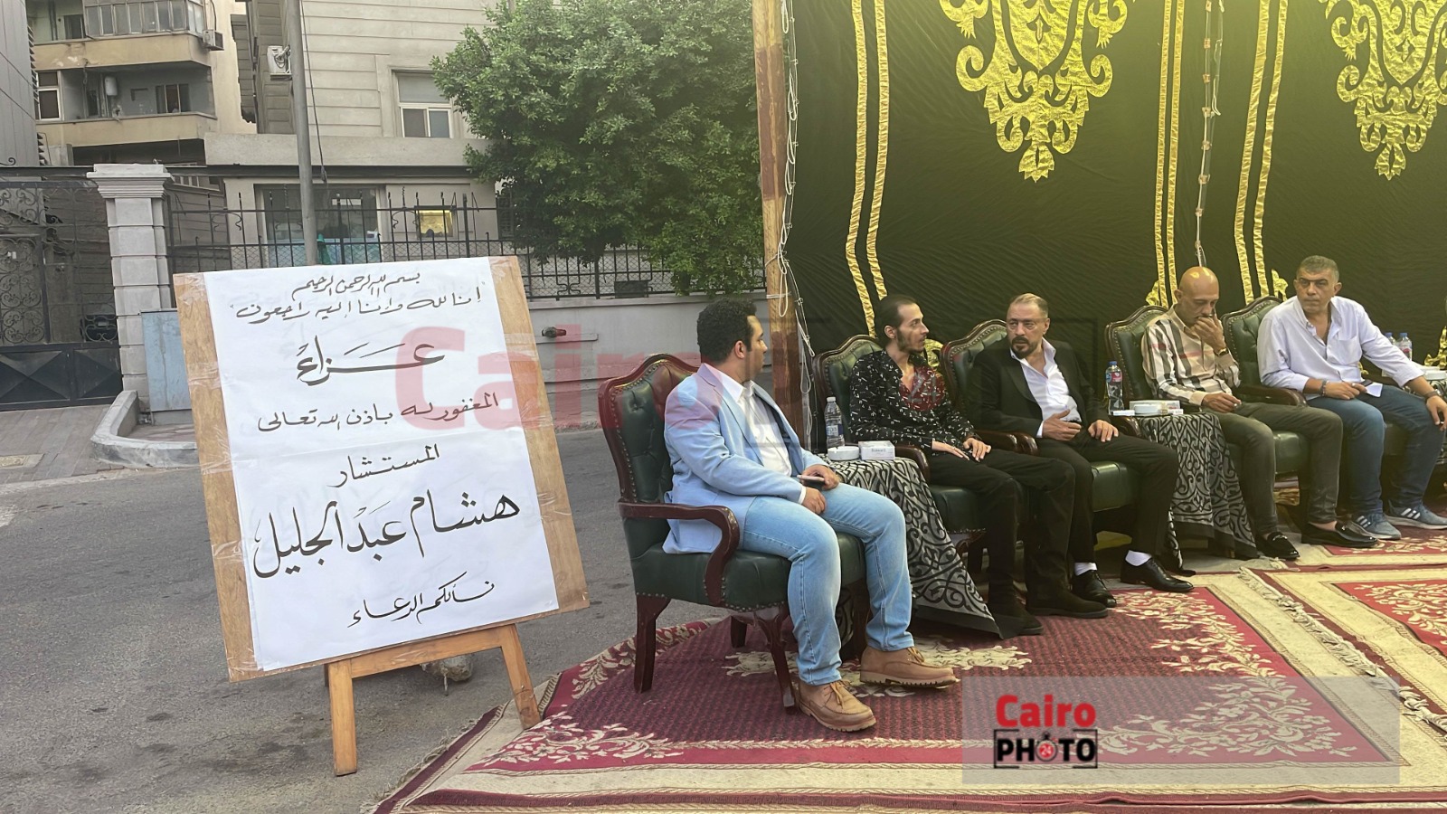 وظهر عمرو عبد الجليل في عزاء شقيقه، بوجه شاحب يسيطر عليه ملامح الحزن، على فقدان شقيقه، ويجلس بجانبه الفنان محمد عبد الحافظ؛ ليستقبلا عزاء المرحوم.