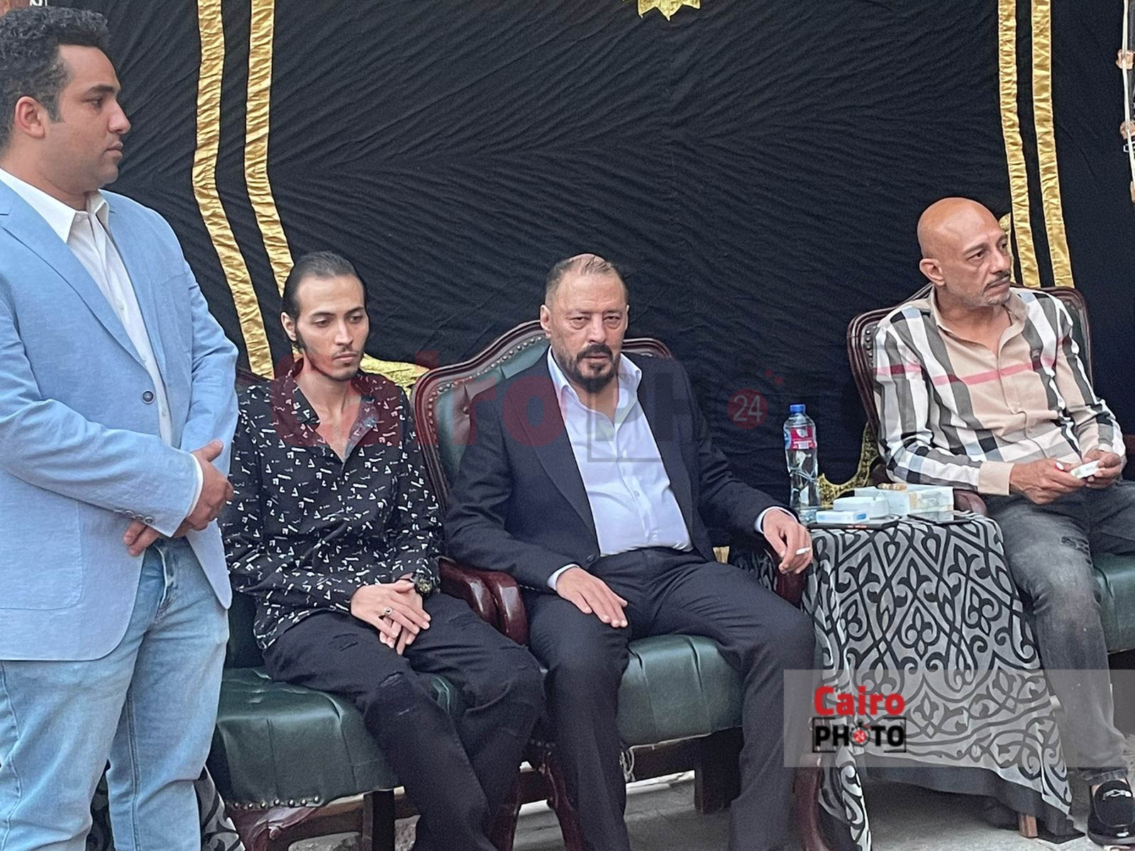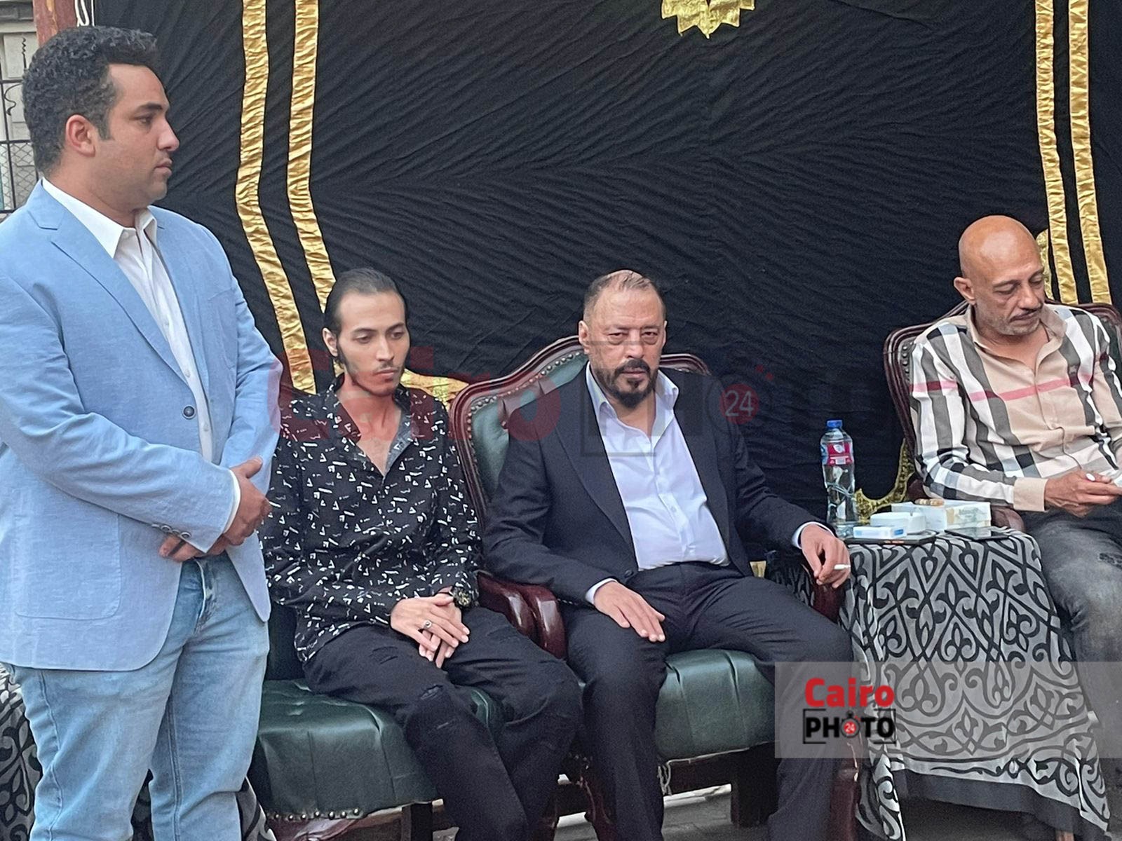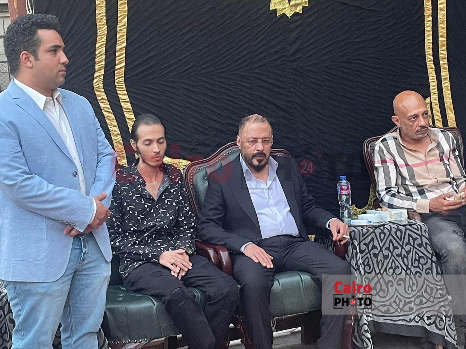 وظهر عمرو عبد الجليل في عزاء شقيقه، بوجه شاحب يسيطر عليه ملامح الحزن، على فقدان شقيقه، ويجلس بجانبه الفنان محمد عبد الحافظ؛ ليستقبلا عزاء المرحوم.