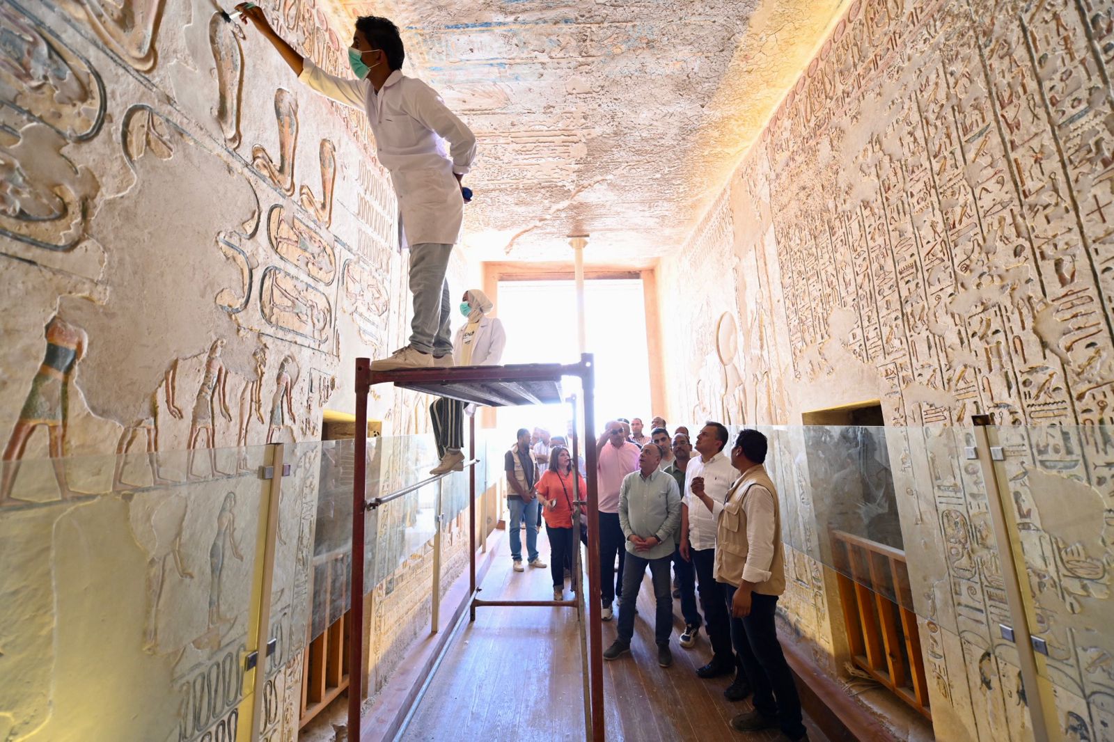 وزير السياحة يوجه بسرعة الانتهاء من ترميم بعض المقابر الأثرية بوادي الملوك | صور