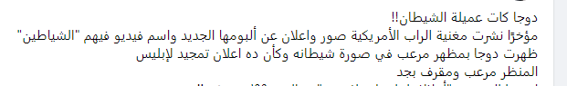 وقال حساب آخر: ظهرت دوجا بمظهر مرعب في صورة شيطانه، وكأن ده اعلان تمجيد لإبليس، المنظر مرعب ومقرف بجد.