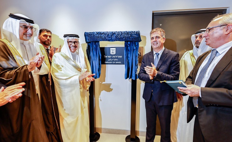 افتتح وزيرا خارجية البحرين وإسرائيل، عبد اللطيف الزياني وإيلي كوهين، أمس الاثنين، المقر الجديد لسفارة دولة إسرائيل لدى المملكة.