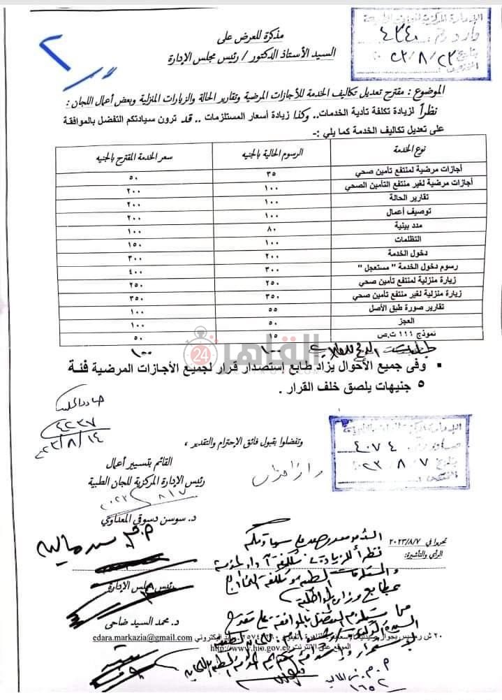 التأمين الصحي يقرر زيادة أسعار الخدمات المقدمة باللجان الطبية العامة | مستند