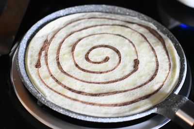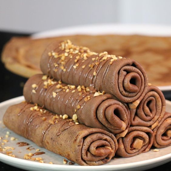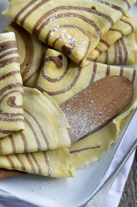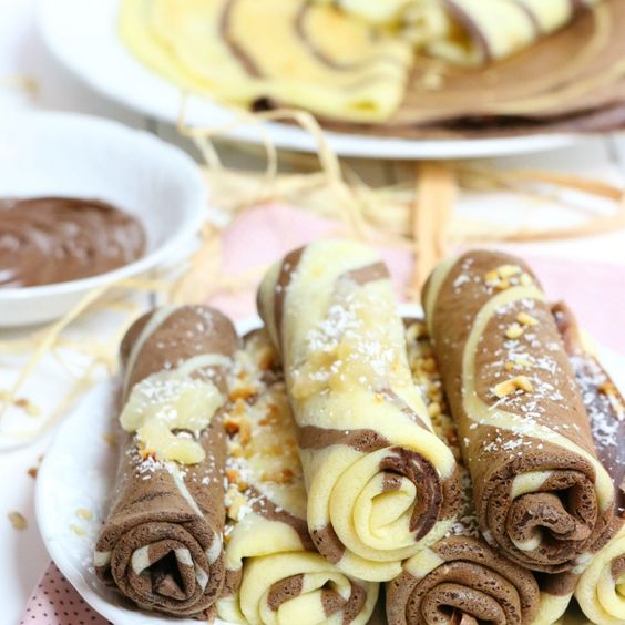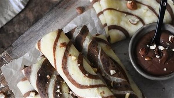 وفيما يلي خطوات طريقة عمل الكريب الحلو بالشوكولاتة على شكل حلزوني تايجر: