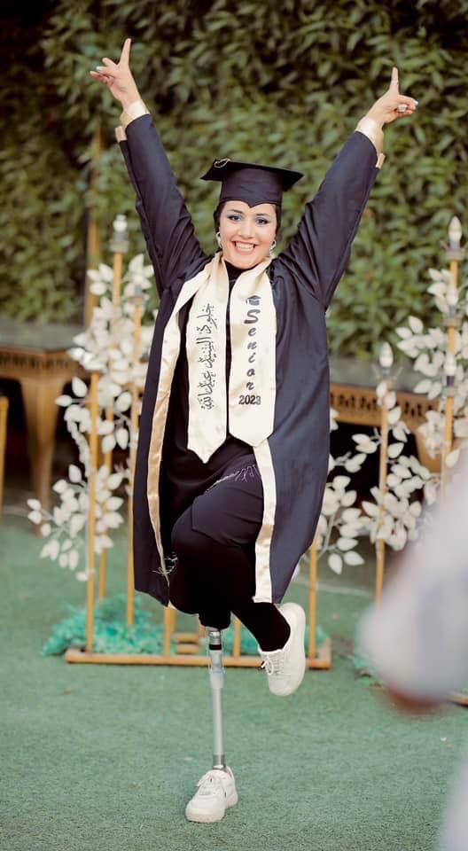 أصيبت في حادث وأصرت على استكمال دراستها.. طالبة الطرف الصناعي في حفل التخرج: الرضا هون عليّا الابتلاء