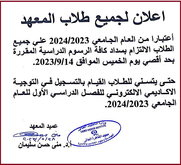 وأوضح الطلاب، أنه تم رفض التقدم بطلبات لتقسيط المبلغ المقرر دفعه للسنة الدراسية، متابعين: تم إخطارنا من قبل شئون الطلاب أنه إذا لم يتم سداد كامل المبلغ في موعد أقصاه يوم 14 سبتمبر 2023 سيعتبر الطالب متخلف ولم يسمح له بتسجيل التوجيه الأكاديمي للسنة الدراسية نهائيًا.