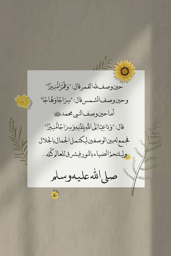 - في يوم مولده أشرقت الأرض بنور ربها، وفاض النور في جميع مكة وما حولها، فصلوا عليه وسلموا تسليما.