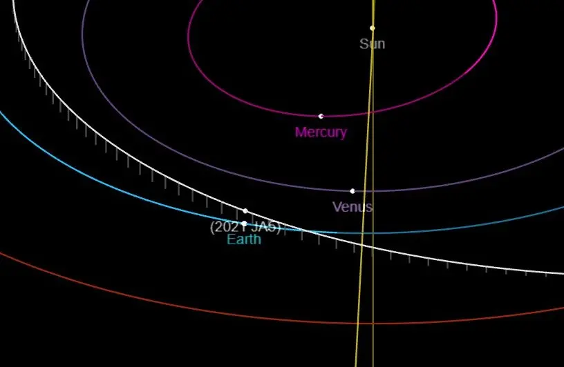 وتم اكتشاف الكويكب الكبير، الذي يبلغ طوله نحو 60 قدمًا، والمسمى JA5، في عام 2021، ومن المتوقع أن يبتعد عن الأرض بمقدار 3.17 مليون ميل.