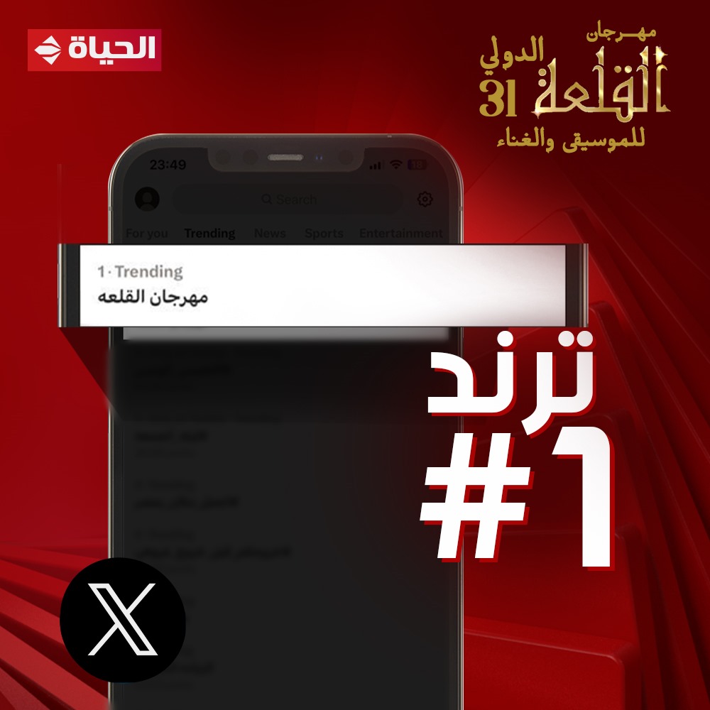 تصدر مهرجان القلعة للموسيقى والغناء في دورته الـ 31 المذاع على شبكة تليفزيون الحياة قائمة تريند تطبيق X “تويتر سابقا” في مصر، خلال الساعات القليلة الماضية، من مساء الخميس، تزامنا مع الحفل الختامي للمهرجان.