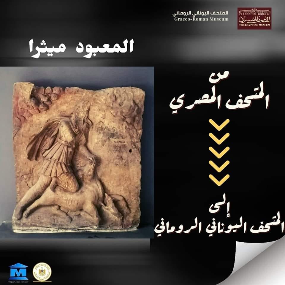وقالت إدارة المتحف اليوناني الروماني بالإسكندرية، في بيان لها، إن ميثرا كان إلهًا شرقيًا مرتبطًا بالزرادشتية، وشاعت عبادته في الإمبراطورية الرومانية خاصة بين الجنود، ووجدت معابد لميثرا في مصر اكتشفت بقاياها في منف والأشمونين، وكانت معابده عبارة عن كهوف تحت الأرض، يزينها دائما المنظر الشائع لأهم طقوس عبادة ميثرا الذي يصوره يذبح ثورًا رمزا للانتصار على الشر أو الظلام، يساعد ميثرا كلب وثعبان وغراب وعقرب ويعلو التصوير جذعان يرمزان للشمس والقمر.