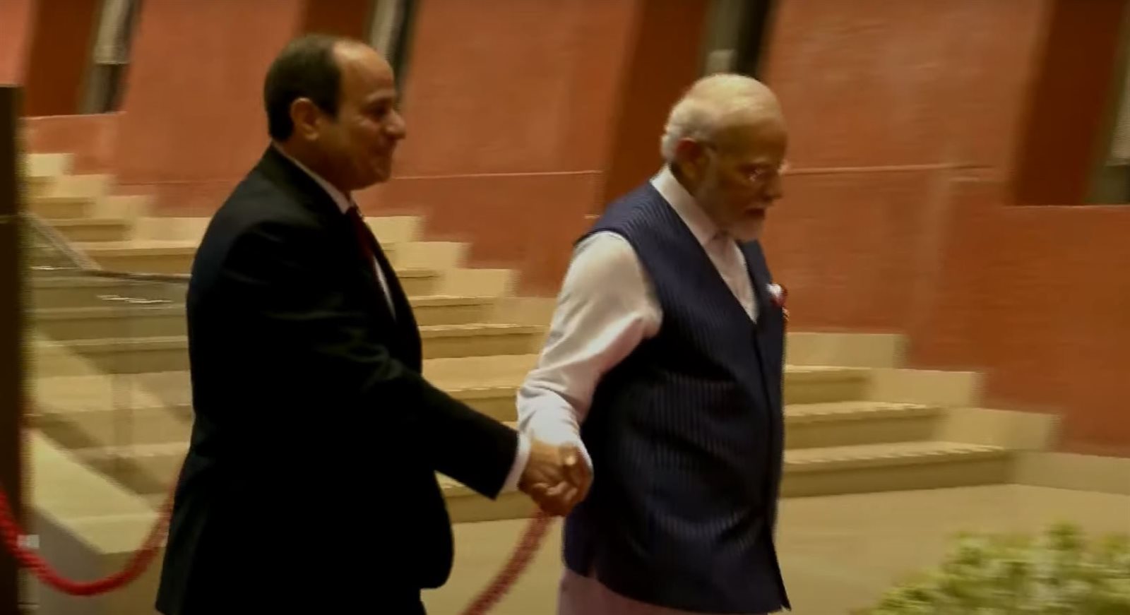 استقبلت الرئيسة الهندية، دروبادي مورمو، ورئيس الوزراء ناريندرا مودي، الرئيس عبد الفتاح السيسي، لدى وصوله لـ مقر حفل عشاء مجموعة العشرين، والذي يعقد بالعاصمة نيودلهي.