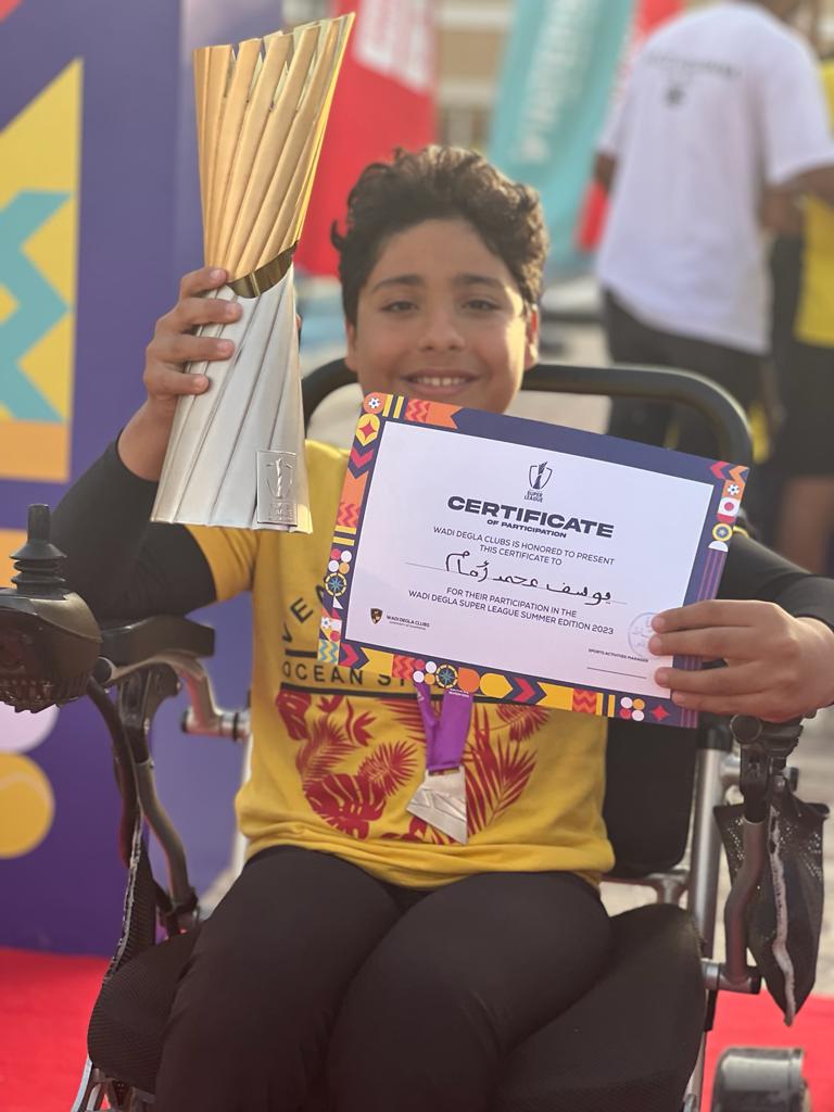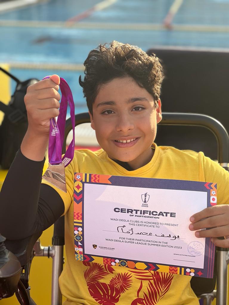 حقق يوسف محمد إمام بطولة المركز الثاني على مستوى تصفيات أندية وادي دجلة في رياضة السباحة لذوي القدرات الخاصة.