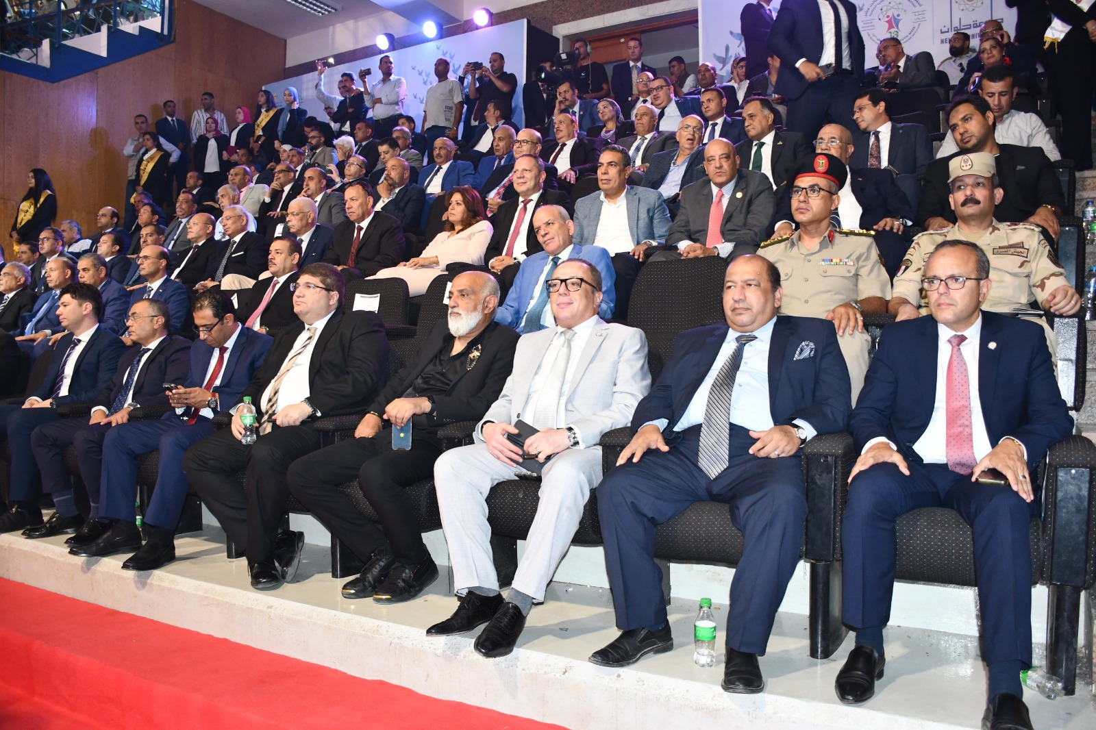 وذلك بحضور الدكتور السيد قنديل رئيس جامعة حلوان، وممثل عن الوزير رئيس هيئة الرقابة الإدارية، والدكتور عمرو عزت سلامة رئيس اتحاد الجامعات العربية، ولفيف من رؤساء الجامعات وقيادات الوزارة ونواب رؤساء الجامعات وممثلي الجامعات المُشاركة والطلاب من مختلف الجامعات والمعاهد.