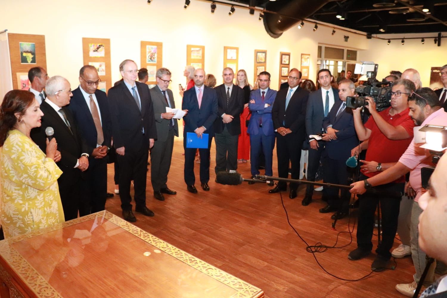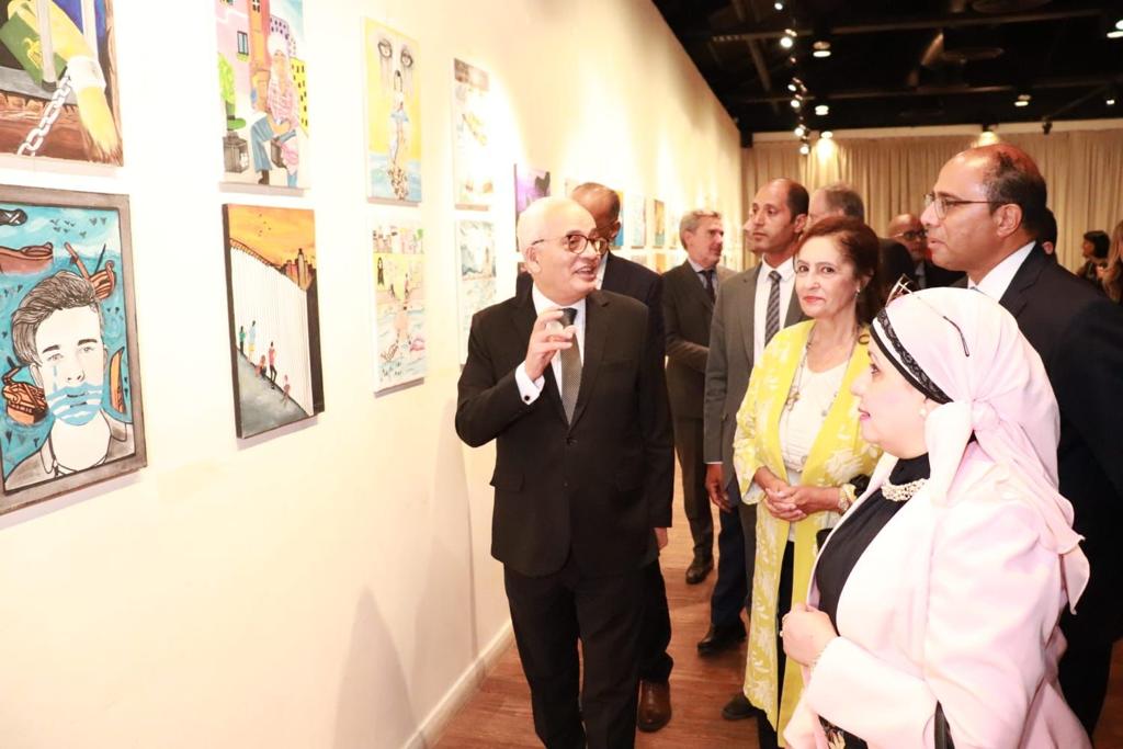 وقد قام بافتتاح المعرض السفيرة نائلة جبر، رئيس اللجنة الوطنية التنسيقية، والدكتور رضا حجازي، وزير التربية والتعليم والتعليم الفني، بحضور السفير احمد أبو زيد المتحدث الرسمي ومدير إدارة الدبلوماسية العامة بوزارة الخارجية، والسيد كارلوس اوليفر، رئيس بعثة المنظمة الدولية للهجرة في مصر، والسفير كريستيان برجر، سفير الاتحاد الأوروبي في مصر، والسفير ميكيلي كواروني، سفير إيطاليا في مصر، ولفيف من السفراء الأجانب ومديري منظمات الأمم المتحدة في مصر.
