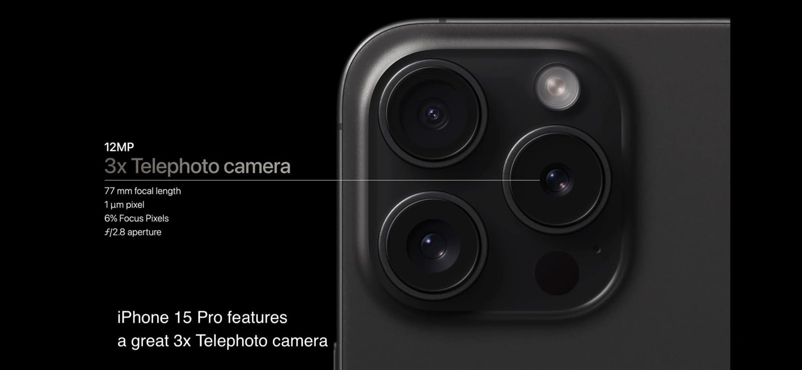 كما تضمن أيفون 15 بلس، والذي يأتي بالمعالج القديم فئة الـ 14، كما يأتي أيفون 15 وأيفون بلس بـ عدسة وايد أنجيل إساسية 48 ميجا بيكسل.