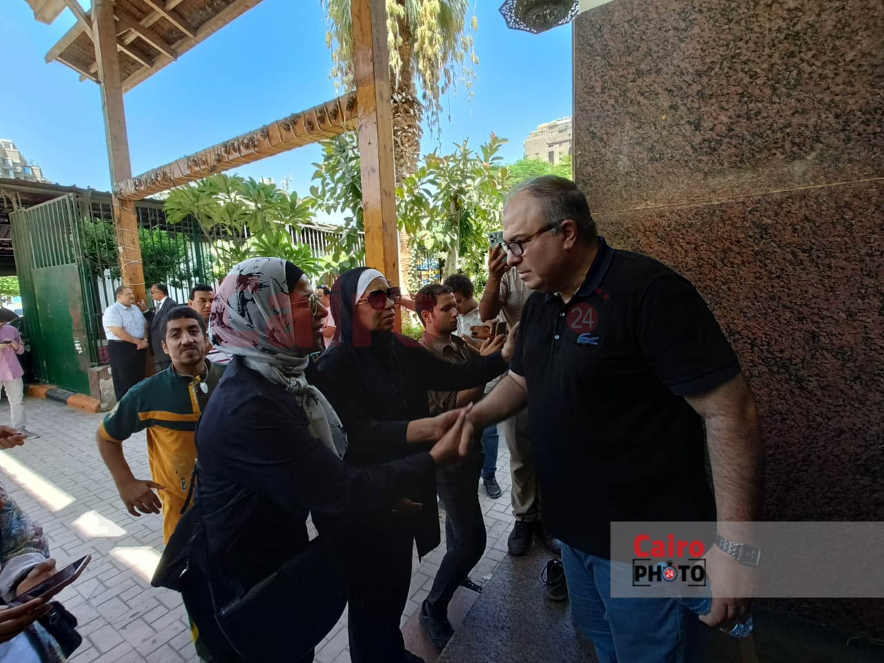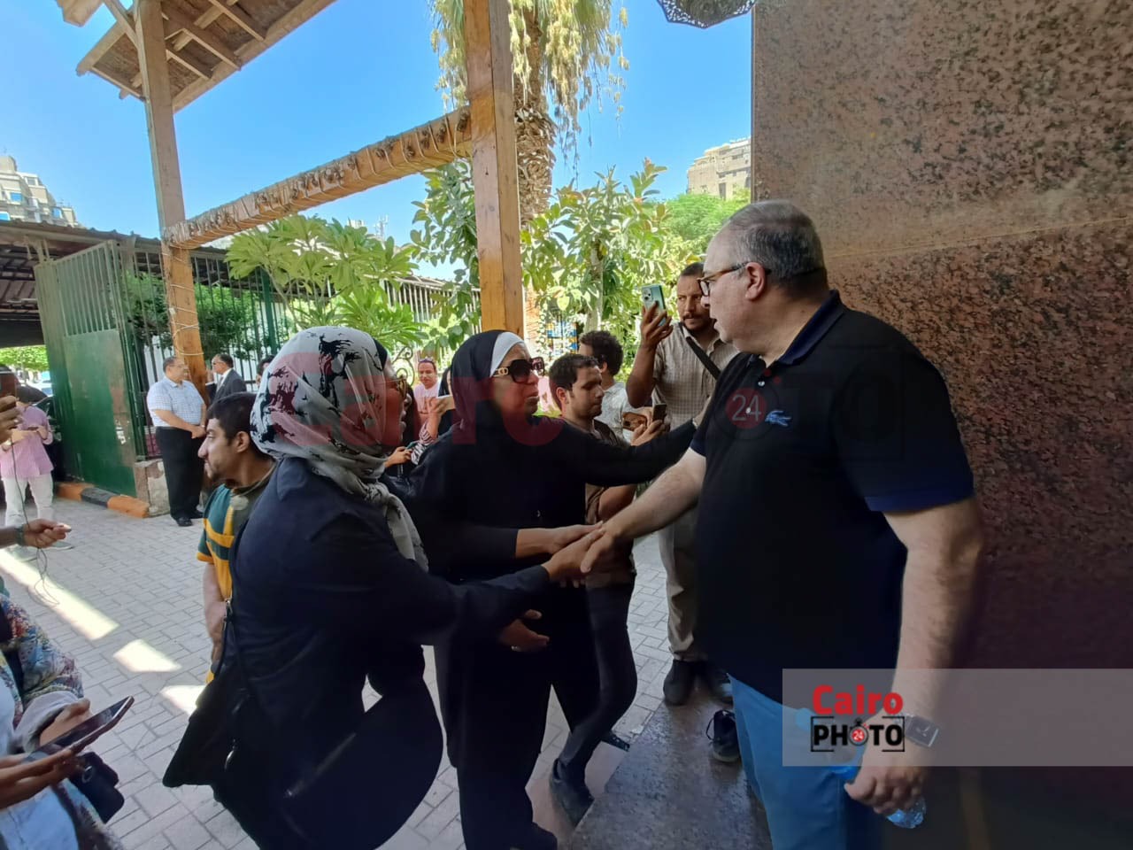 نجل الفنانة كريمان يستقبل واجب العزاء في والدته قبل تشييع الجثمان|صور
