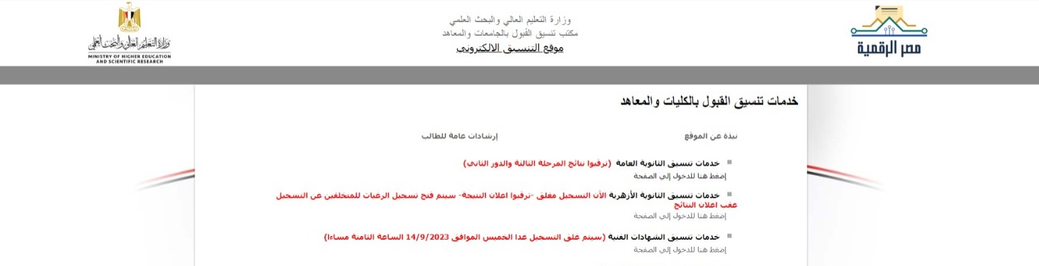التنسيق الإلكتروني: ترقبوا نتيجة المرحلة الثالثة 2023 لطلاب الثانوية الدورين الأول والثاني
