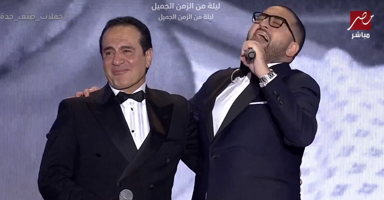 بعيون مليئة بالدموع.. محمد ثروت ونجله يغنيان كده يا قلبي لـ شيرين عبد الوهاب في حفل السعودية