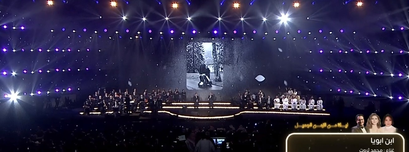 وقال نجل محمد ثروت: بشكر ربنا إني النهارده بغني مع والدي ولو سجدت طول عمري مش هوفيه، وبشكر هيئة الترفيه وتركي آل الشيخ صاحب هذا الفضل وأسمع له تحية كبيرة لإنه حقق لي أمنية عظيمة.