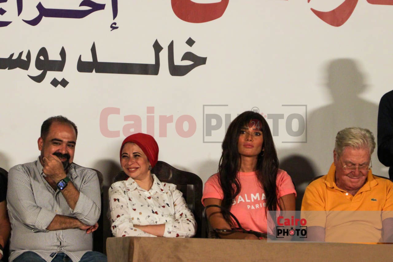 من ناحيته قال أحمد العوضي: سعيد بتقديمي عمل مع خالد يوسف، ومن سوء حظي إني لم يسبق لي التعاون معه من قبل، وسعيد بوجود النجوم الكبار في الفيلم، وإن شاء الله هتشوفوا فيلم كبير وضخم، وكل اللي الجمهور حابب يشوفوا هتشوفوه في الفيلم.