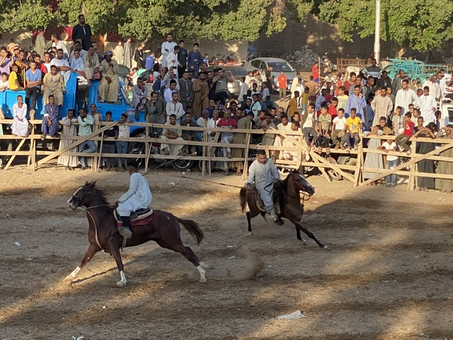 فرسان الصعيد يتنافسون في مهارة ركوب الخيل احتفالا بالمولد النبوي في الأقصر