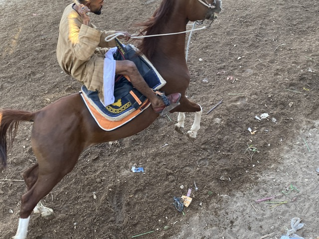 و أضاف العماري: على مدار 14 يوما يتبارى الفرسان في أكبر ملتقى وتجمع لفرسان الصعيد منذ 150 عاما ضمته هيئة اليونسكو كنوع من أنواع التراث العربي الإسلامي في عام 2016 فرحا وإبتهاجا بالمولد النبوي الشريف على أرض مضمار مخصصة لهذا الغرض مساحتها 8 أفدنة مؤمنة بالصدادات الخشبية.