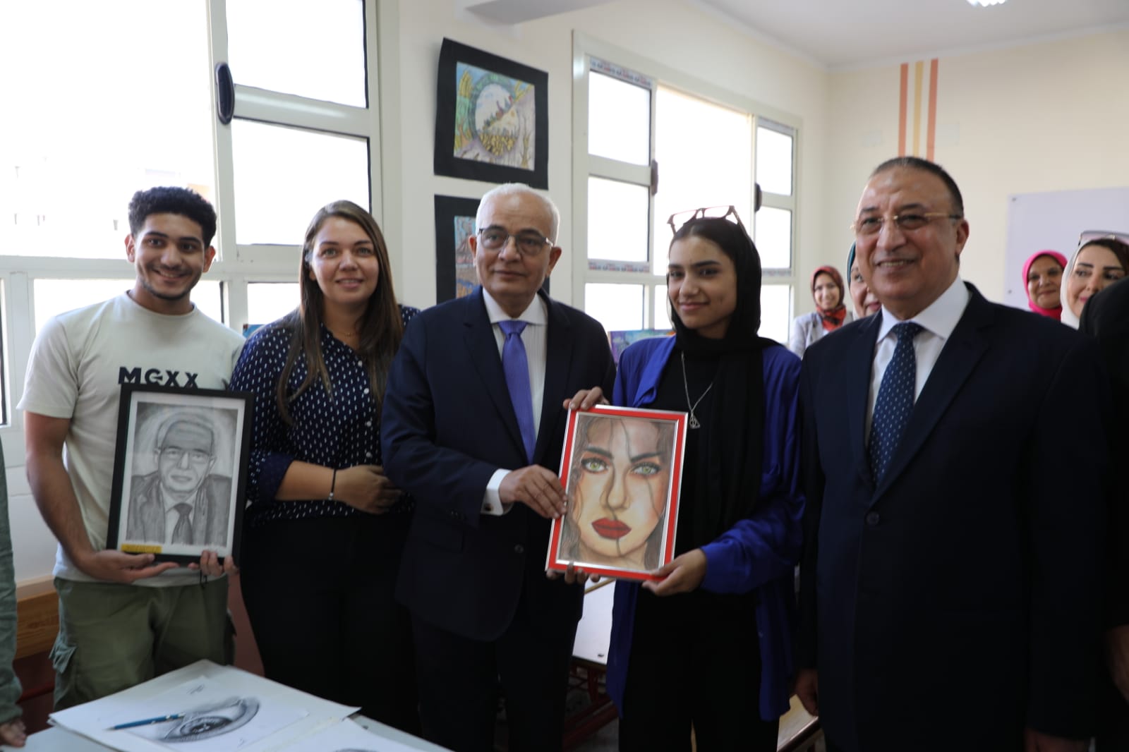 وقد تفقد الوزير والمحافظ قاعات رياض الأطفال وعددا من فصول المدرسة، وقاعة التربية الفنية واستعرضا أيضا أعمال الطلاب الفنية خلال حضورهم مركز تنمية القدرات الصيفي، وأشاد الوزير بأعمال الطلاب من رسومات، ولوحات، والرسم على المعادن، وحث الوزير الطلاب على الاستمرار في ممارسة هوايتهم وتنمية مهاراتهم الفنية.