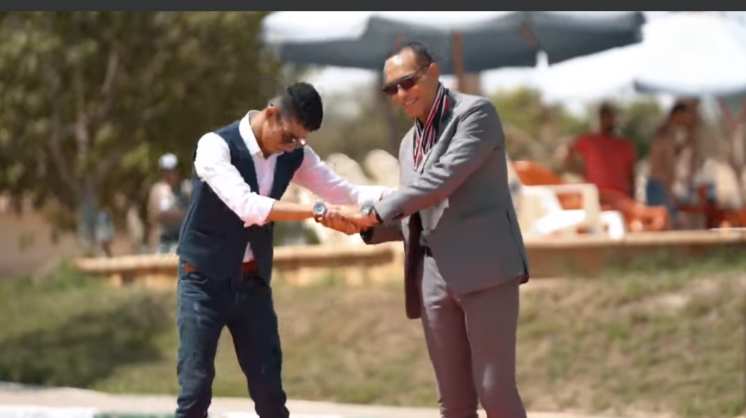 وظهر المدرس الذي يدعى سيد العراقي، وهو يتحرك في حماية بودي جارد، ثم تحدث المدرس إلى الطلاب، الذي حرصوا على تقبيل رأسه، وأعطوا ميداليات له.