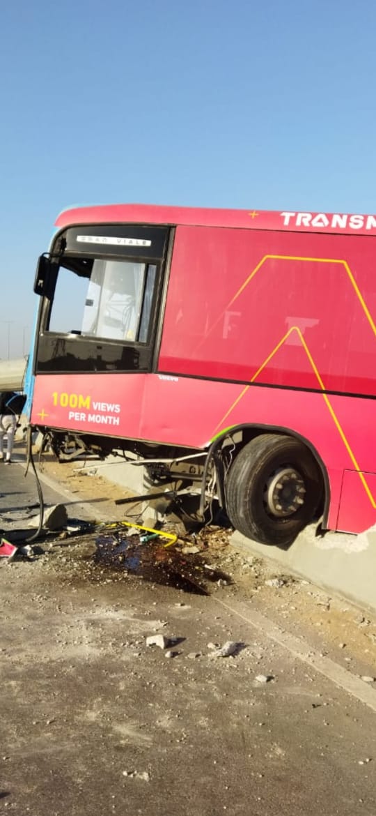 إصابة 3 أشخاص في تصادم أتوبيس بعمود إنارة وسيارتين بحدائق الأهرام | صور