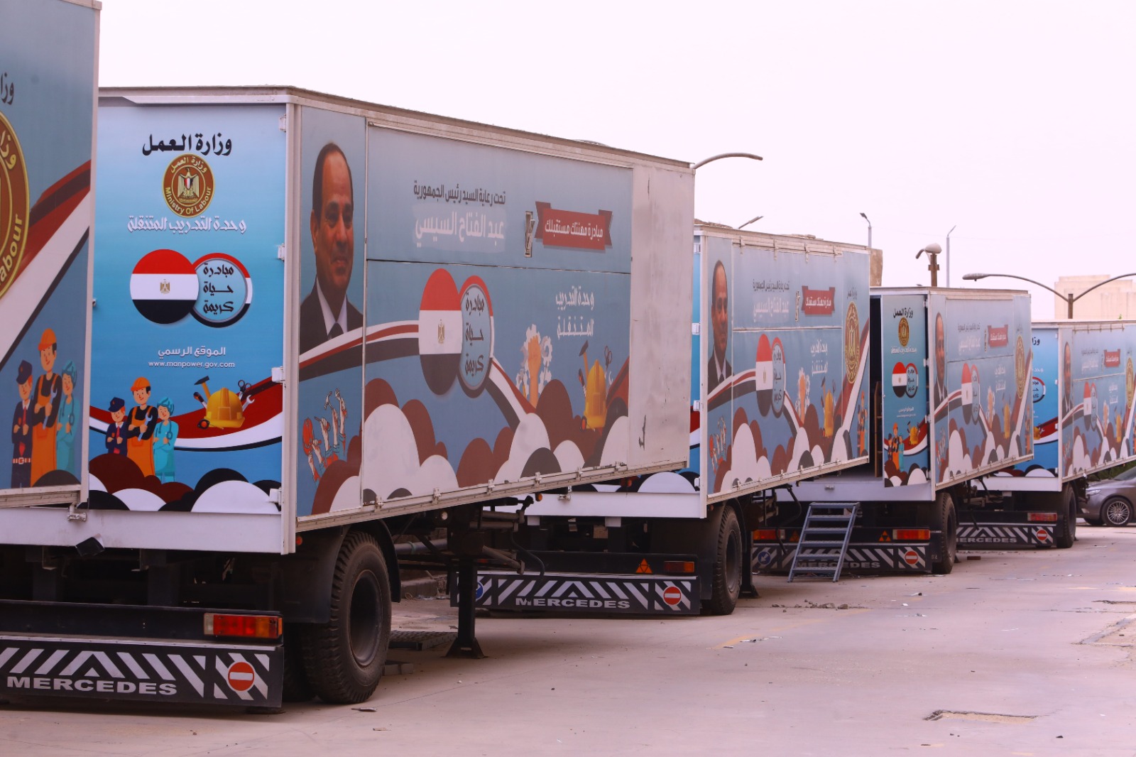 التقطت كاميرا وزارة العمل صورًا لعربات التدريب المتنقلة الجاهزة للإنطلاق خلال الفترة المقبلة، لتدريب الشباب على 6 مهن يحتاجها سوق العمل، ولتنضم إلى 27 وحدة متنقلة تعمل الأن في جميع المحافظات للتدريب المهني على 3 مهن.