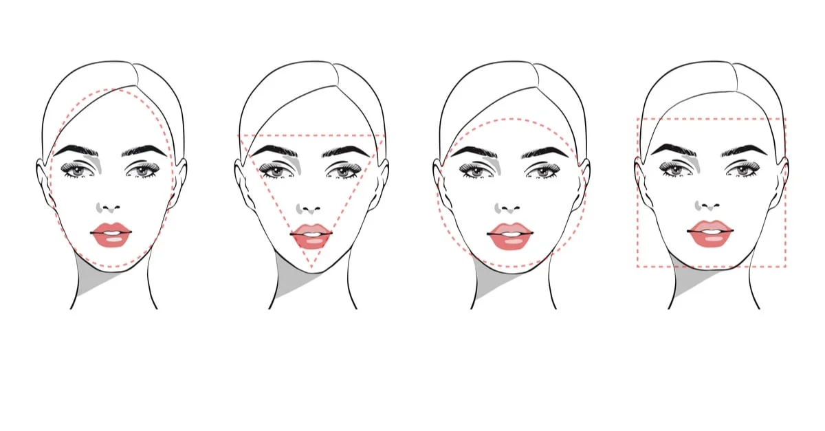 - الوجه المثلث: يكون الوجه طويلا وليس عريضا بينما تكون منطقة الجبين ضيقة.