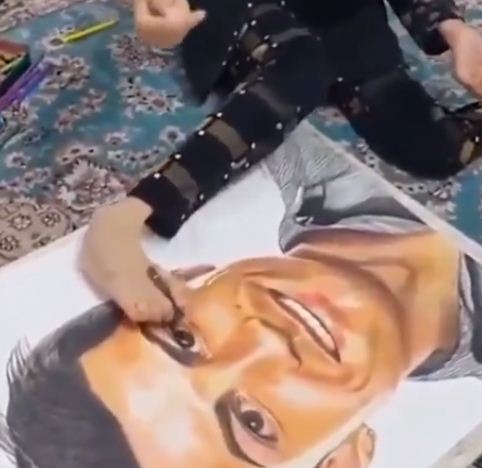 وظهرت الفتاة الإيرانية في مقطع فيديو متداول على مواقع التواصل الاجتماعي بكثرة، وهي تجلس على الأرض وتمسك ريشة الرسم بقدمها وتقوم برسم لوحة رائعة لـ وجه النجم البرتغالي كريستيانو رونالدو.
