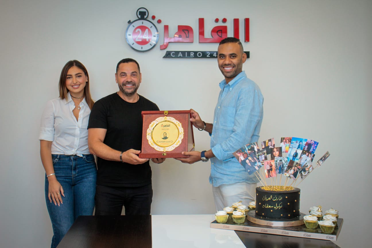 وكان في استقبال طارق العريان رئيس التحرير محمود المملوك، الذي سلمه درع التكريم، وعصام شلتوت مستشار التحرير، وسهر عوض رئيس قسم الفن، والزميلتان يمنى شريف، ورودينا مجدي.