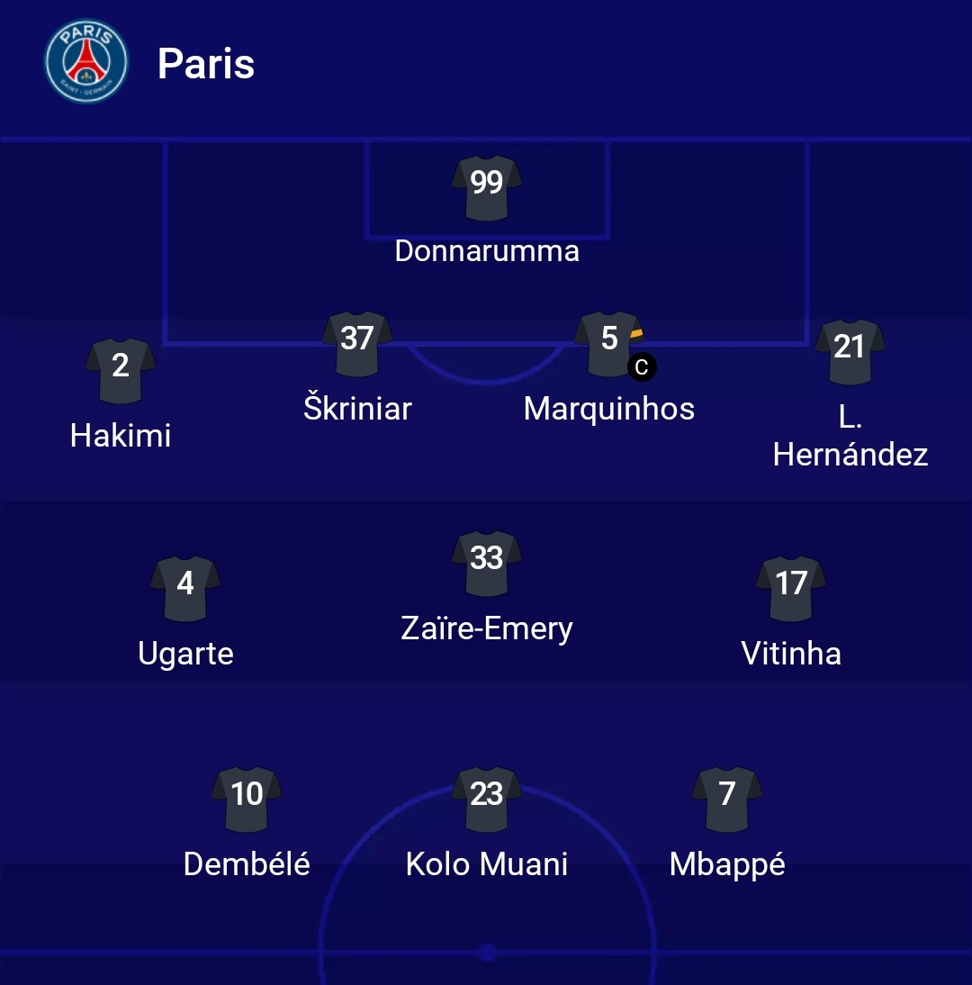 خط الدفاع: ماركينيوز، سكرينار، حكيمي، لوكاس هيرنانديز.