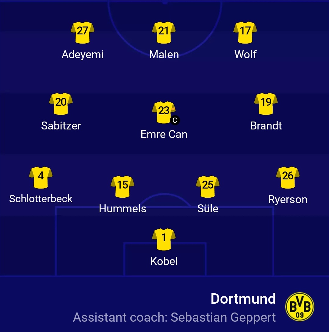 بينما جاء تشكيل فريق بوروسيا دورتموند الرسمي لمباراة اليوم كالآتي: