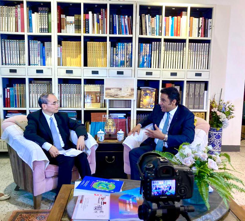 وعقب المنتدي أجري عباس لقاءات إعلامية مع عدد من وكالات الأنباء الصينية من بينها وكالة "شنخوا" استعرض فيها آخر ما آلت إليه الأعمال بالمتحف المصري الكبير ونسب الإنجاز به، والاستعدادات لإنهاء جميع الأعمال تمهيدا لافتتاحه، مؤكدًا على تطلعه للتعاون بين المتحف والمتاحف الصينية خاصة في ظل ما يتمتع به البلدان من تاريخ مشهود، باعتبارهما من أقدم الحضارات، داعيا الشعب الصيني لزيارة مصر والتمتع بما بها من مقومات سياحية وأثرية فريدة ومنتجات سياحية مختلفة ومتنوعة.