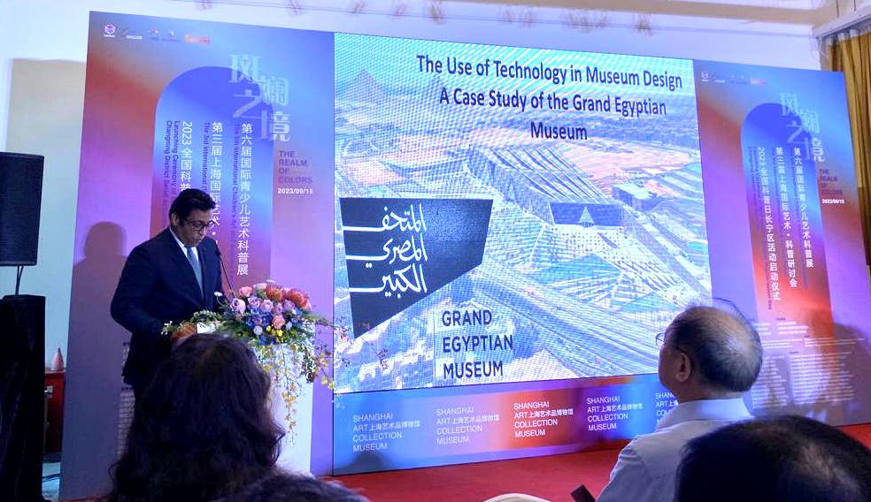 شارك الدكتور الطيب عباس مساعد وزير السياحة والآثار للشئون الأثرية بالمتحف المصري الكبير في "منتدى شانغهاي الدولي الثالث للفنون والعلوم" والذي أقيم بمتحف شانغهاي للمجموعات الفنية بجمهورية الصين الشعبية، بحضور عدد من أهم متخصصي تكنولوجيا العرض المتحفي.