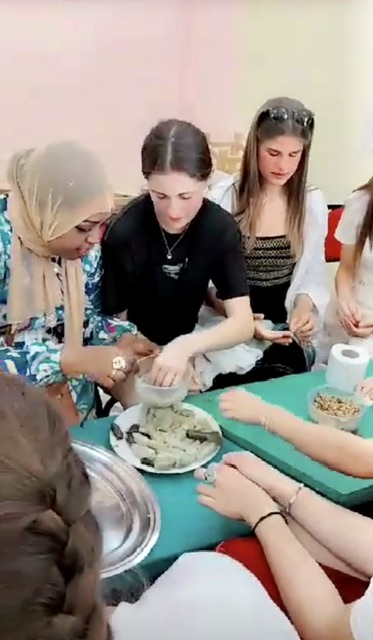 قامت الفتيات الألمانيات بتجربة جديدة ومثيرة بالنسبة لهم؛ بعمل المحشي ولف ورق العنب بمساعدة فتيات الأقصر، وذلك بفعاليات أسبوع الشباب المصري الألماني والذي يقام للعام الـ 11 على التوالي بالطود جنوب مدينة الأقصر، تحت رعاية وزارة التضامن ورئاسة مجلس مدينة الطود.