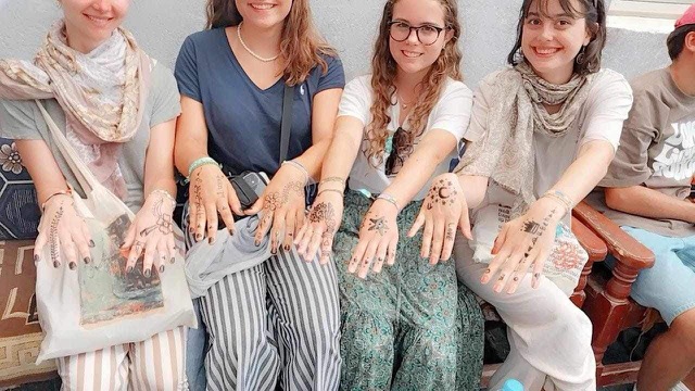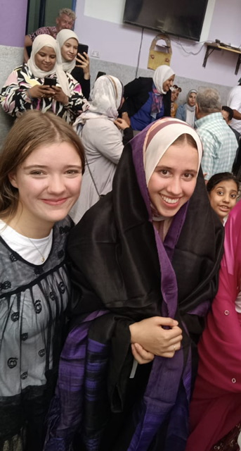 وجربت الفتيات الألمانيات ارتداء الملابس الصعيدية الشعبية من العباية والجرجار الصعيدي؛ حيث بدون في غاية السعادة والفرح وهن يرتدينه، كما قمن بتزيين أيديهن برسم الحناء بالورد والزهور.