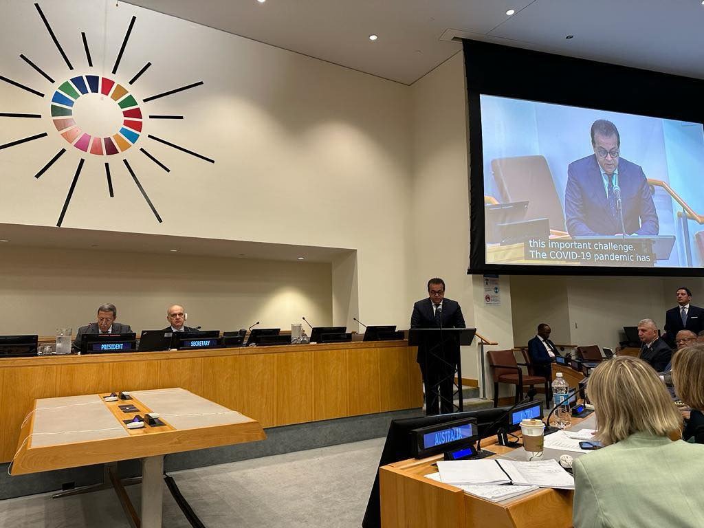 جاء ذلك في كلمة وزير الصحة والسكان، خلال الدورة الـ78 من اجتماعات الجمعية العامة للأمم المتحدة التي تعقدت في ولاية نيويورك بالولايات المتحدة الأمريكية.