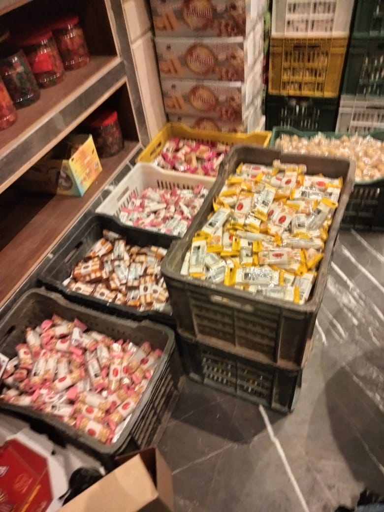 وتم ضبط مصنع حلوى آخر والتحفظ على كمية وقدرها 2000 قطعة حلوى جافة بدون بيانات ومجهولة المصدر جاري سحب عينات للتحليل.