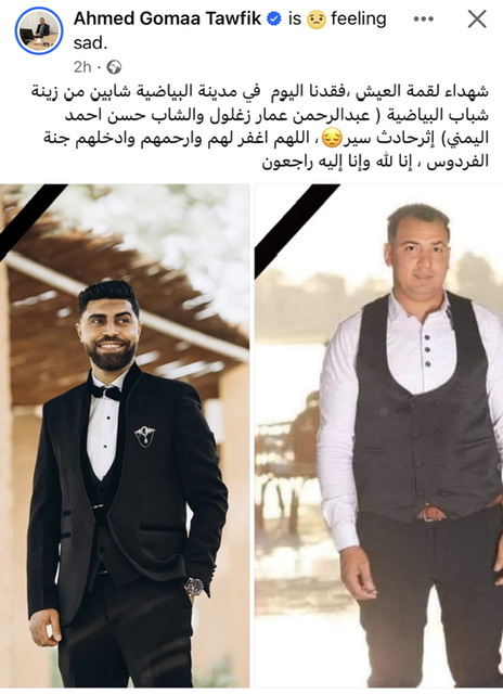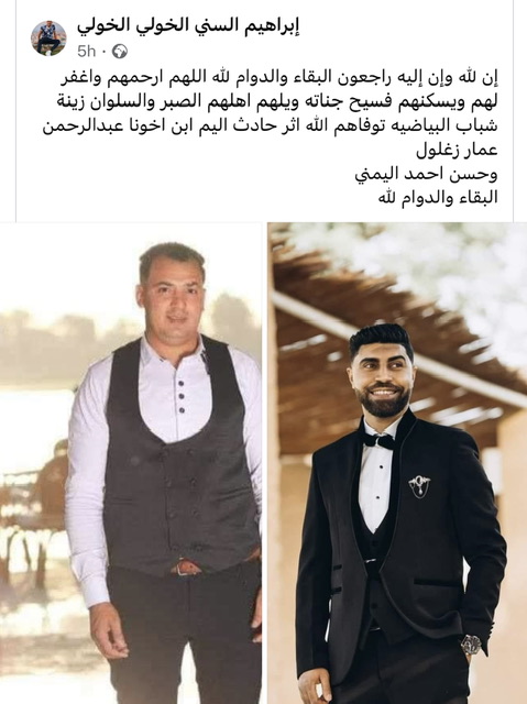 وأصيب أهالي البياضية بحالة من الصدمة والحزن، عبروا عنها عبر منصة التواصل الاجتماعي فيس بوك لوفاة 2 من شباب البياضية حديثي الزواج دفعة واحدة بعدما انقلبت سيارة نقل الأموال التي كانوا يعملون عليها.
