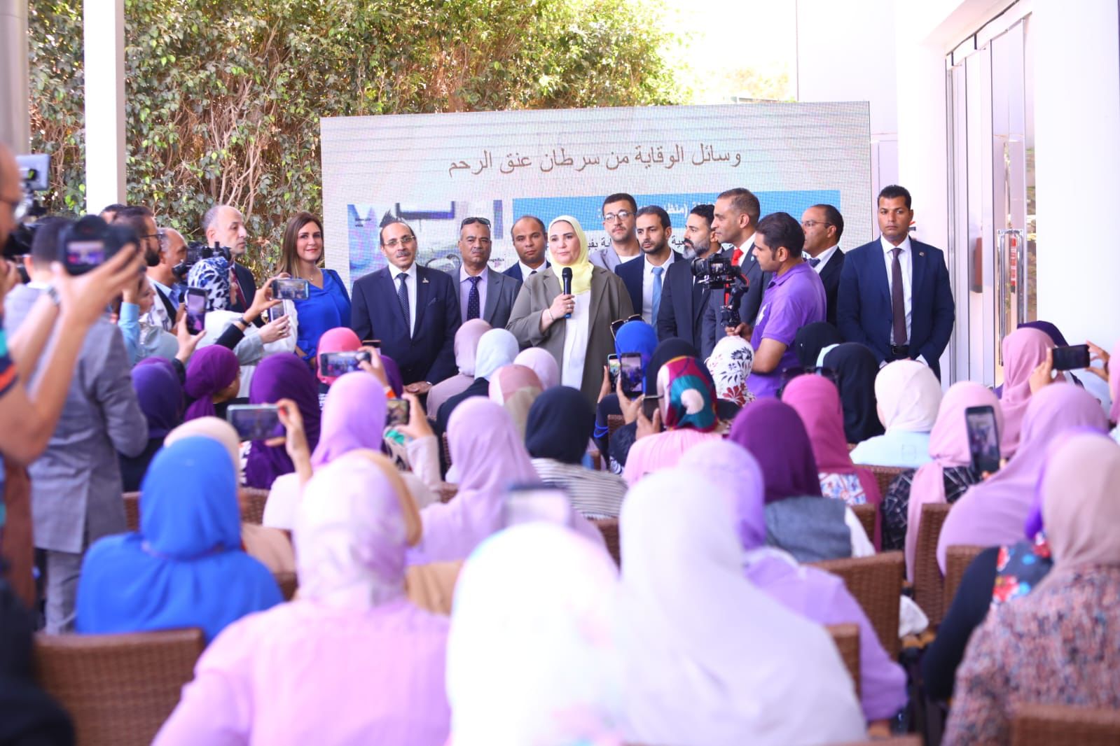 شهدت نيفين القباج وزيرة التضامن الاجتماعي، خلال زيارتها لمحافظة الإسكندرية لتدشين حملة رحلة الألف كيلو متر بالتعاون مع الجمعية المصرية لمنظار عنق الرحم، جلسة تدريب الرائدات الاجتماعيات بمحافظة الإسكندرية وورشة عمل عن ريادة الأعمال للسيدات المُنتجات ثم جلسة توعية مكبرة لسيدات محافظة الإسكندرية عن سرطان عنق الرحم والصحة الإنجابية ووسائل تنظيم الأسرة المختلفة من خلال الأطباء والكوادر الطبية.