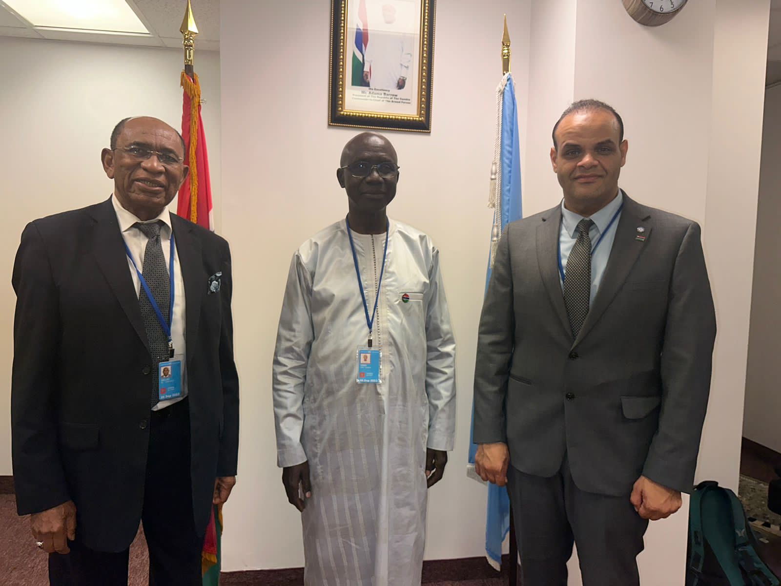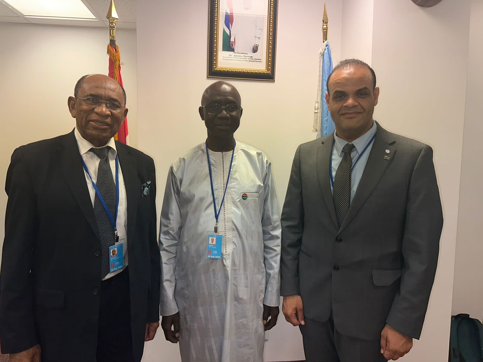 التقى الدكتور حاتم رسلان السفير المتجول لدولة جامبيا برئيس الجمعية المنظمة للمؤتمر الإسلامي المقبل في جامبيا يانكوبا ديبا، والسفير عمر جبريل صلاح المندوب الدائم لجمهورية جامبيا لدى منظمة التعاون الإسلامي، وذلك في إطار مشاركته في اجتماعات الجمعية العامة للأمم المتحدة في دورتها الثامنة والسبعين المنعقدة حاليًا في نيويورك.