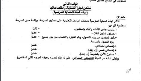 وأشارت وزارة التعليم في كتابها الدوري الصادر بشأن لوائح الانضباط المدرسي، إلى قواعد تشكيل لجنة الحماية المدرسية، والتي جاءت كالتالي: